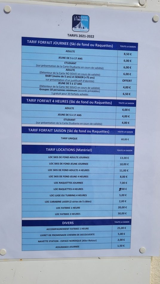 Los precios de alquiler de raquetas o esquís de fondo van por horas, por jornada o por temporada. A continuación os dejo una foto de 2022. Son precios asequibles.