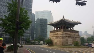 Hoy toca ronda de palacios. Visitaremos el Gyeongbokgung, con su puerta Gwanghwamun donde ejecutan el cambio de guardia. Cogemos un taxi tras desayunar estos cafés ricos para llevar y por 3.500 won nos plantamos en la puerta.