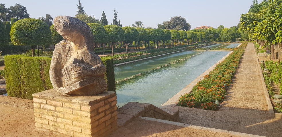 La entrada es gratuita (hoy es domingo) pero hay que inscribirse en la página oficial. De normal cuesta unos 12-euros aproximadamente. El Alcázar de los Reyes Cristianos es un edificio ubicado en uno de los márgenes del río Guadalquivir. Alfonso XI ordenó construirlo en 1328 y allí estuvo anteriormente la residencia del gobernador romano y la aduana. Tiene unos magníficos jardines y patios con inspiración mudéjar. En estos hay un homenaje a los Reyes Católicos y a Cristóbal Colón de cuando solicitó audiencia para embarcarse en el viaje al continente de las Américas. En una de las salas principales hay mosaicos de la época romana encontrados en la plaza de la Corredera. Veremos sus estanques y sus preciosas flores y tras hacer la visita regresamos al apartamento para ir a Medina Al Zahara y de camino vemos el museo taurino, la casa donde vivió Manolete, la sinagoga medieval judía (entrada gratuita) y la iglesia Trinidad y la iglesia de San Nicolás de la Villa.