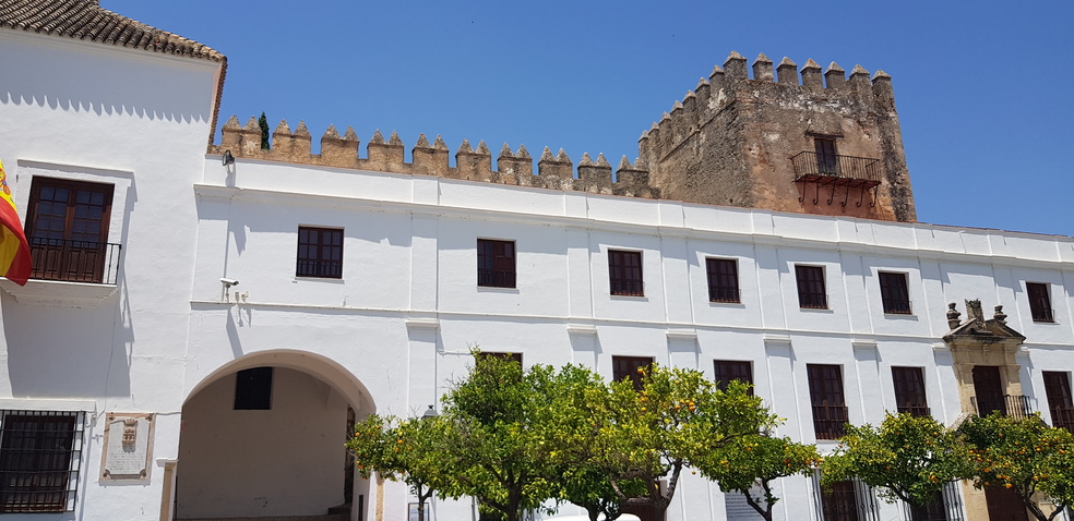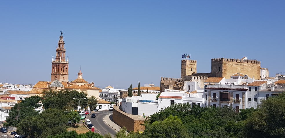 Allí se puede ver el Alcázar de Jerez, una fortaleza árabe del s. XI. Veremos la catedral por fuera, cuyo precio de entrada es de 6-euros con derecho a subir a la torre. El Alcázar está cerrado, así que bordeamos su fachada. Cerca hay un kiosco de música y le rodean bonitos jardines.